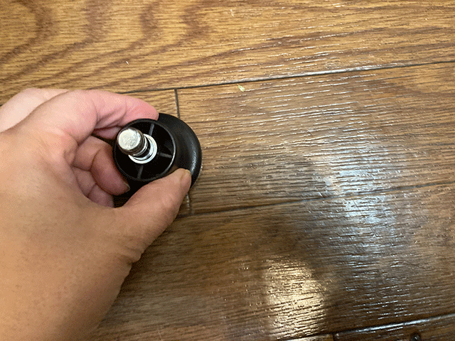 そしてナイロンキャスターをつけます。押し込むだけ。