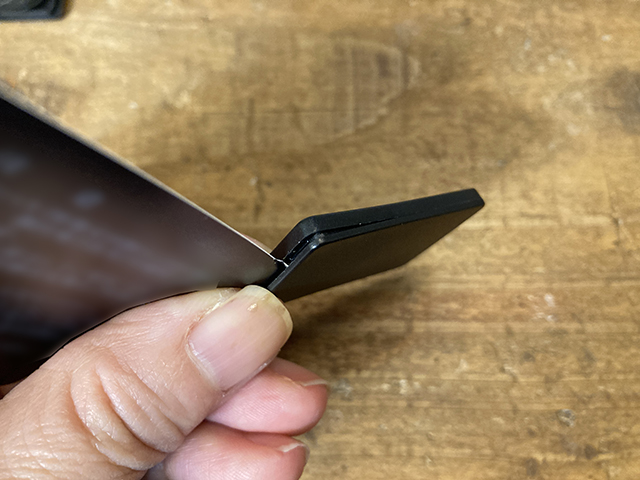 刺すのも難しく、刺しただけでは開かないので、定期を横にフリフリしてみます。